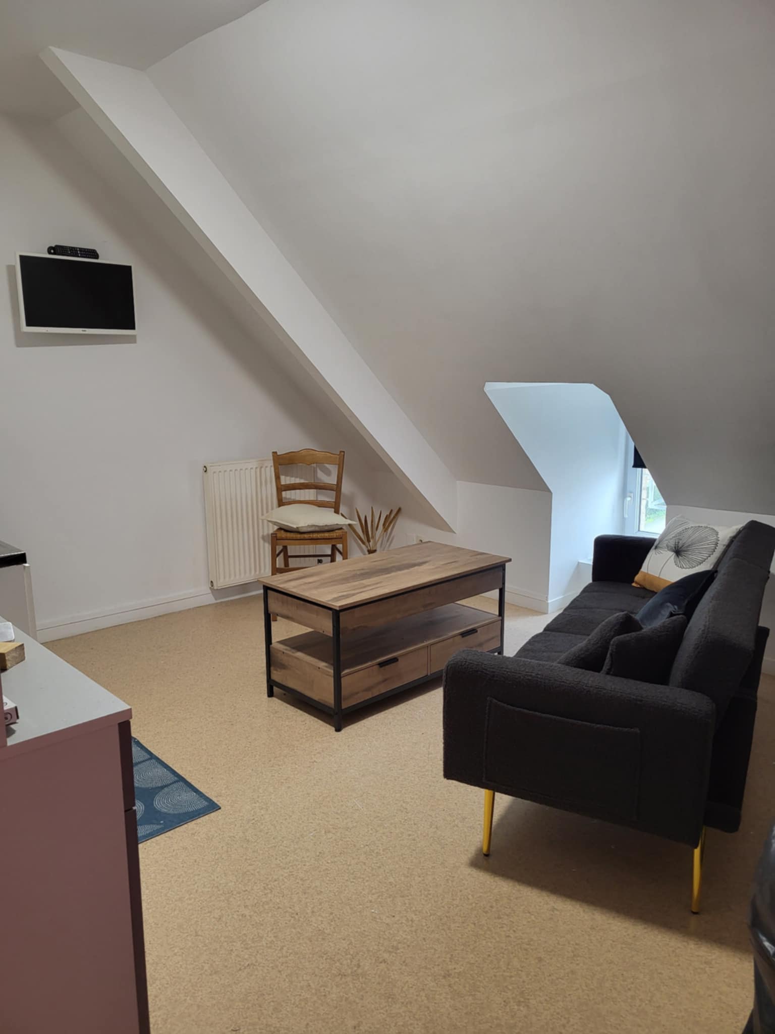 Situé au sein de notre auberge, l’appartement hôtel offre un espace confortable et fonctionnel, alliant autonomie et services hôteliers. Il se compose d’une chambre avec lit double et télévision, d’une salle de bain privative, de WC séparés, ainsi que d’une pièce de vie avec coin cuisine équipée (vaisselle, micro-ondes, cafetière, réfrigérateur), canapé transformable pouvant accueillir un enfant, télévision et bureau. À noter que la kitchenette ne dispose pas de gazinière ni de plaques de cuisson. Idéal pour un séjour en couple, en famille ou lors d’un déplacement professionnel.